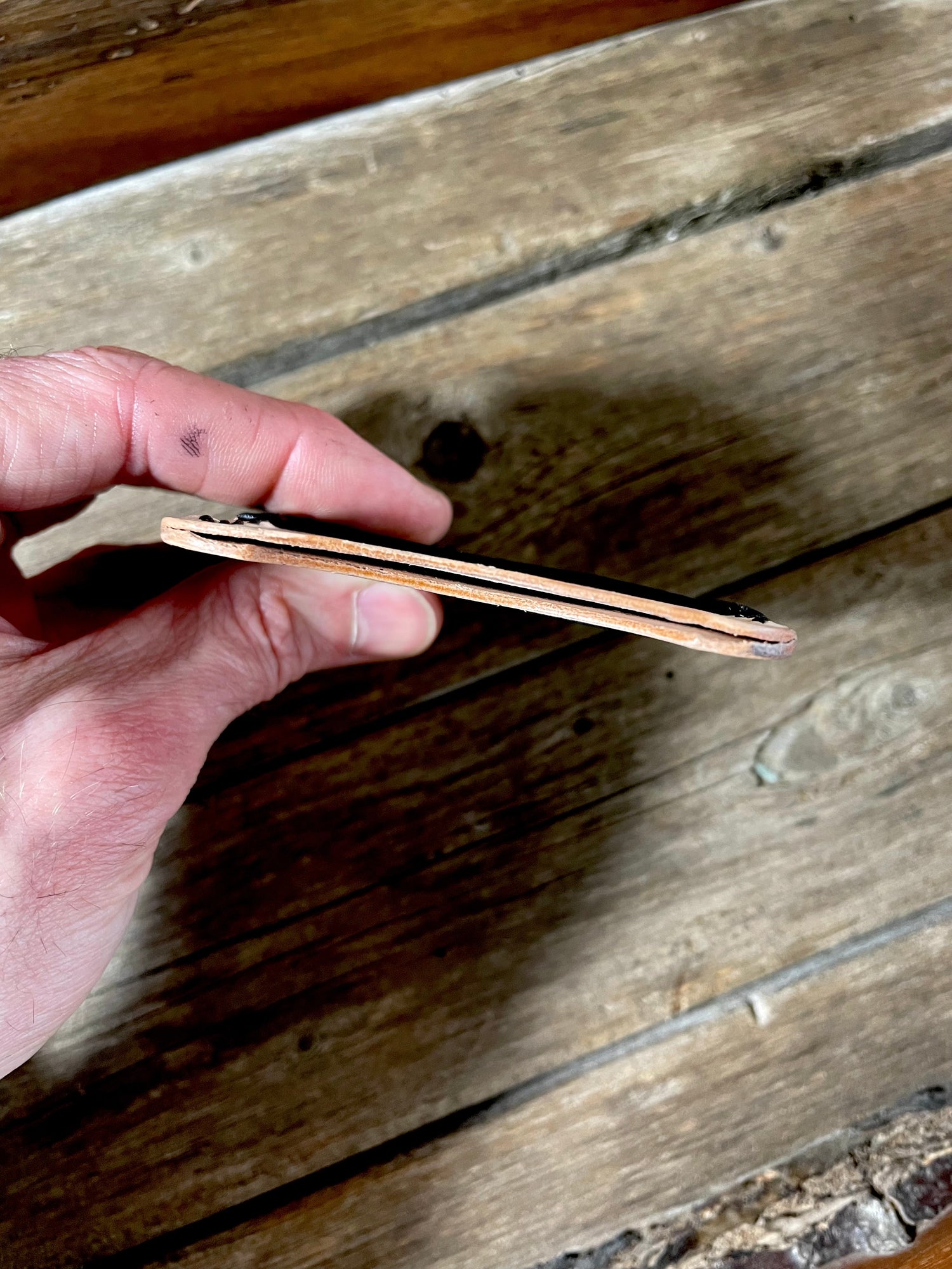 • Hand stitched (saddle stitched) with braided waxed cord from Maine thread co; undeniable durability